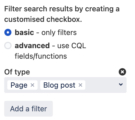 The standard option will allow you to choose any of Confluence's pre-defined filters.