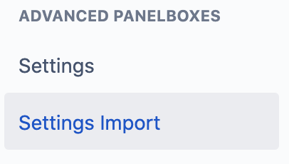 Select "Settings Import" below "Advanced Panelboxes" in the menu on the left.