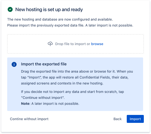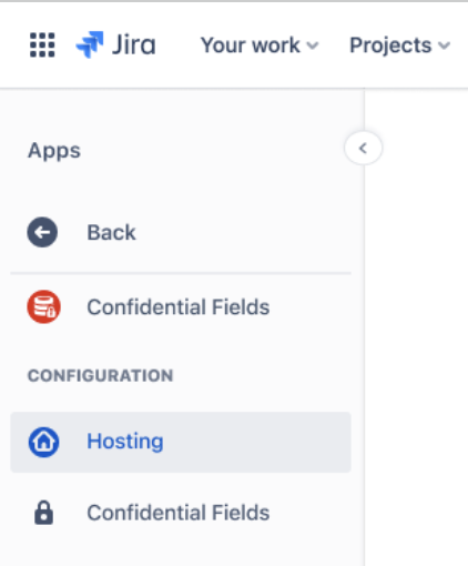 Access the hosting menu by selecting Confidential Fields → Hosting in the left Jira Apps navigation.