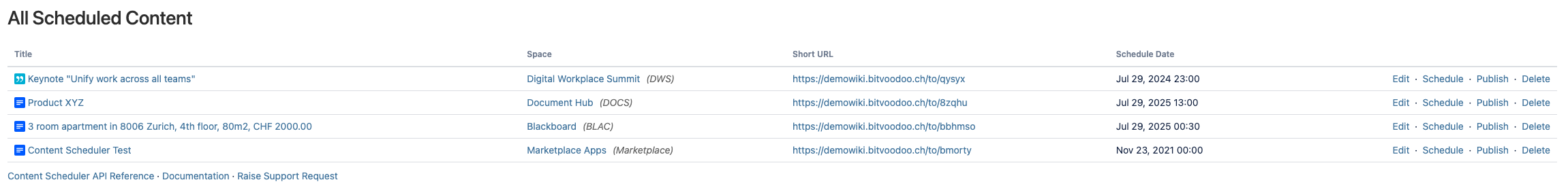Space administrators can manage all scheduled content of a space.