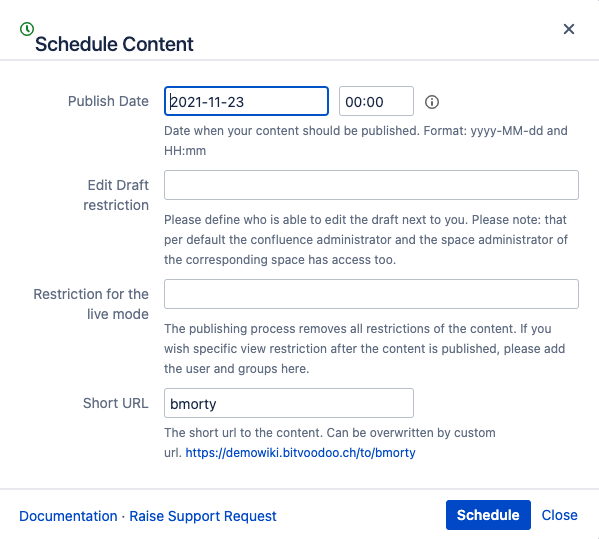 | 3 | Enter the publishing date and time in the Schedule Content Dialogue and click Schedule. |  |