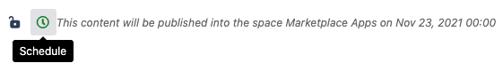 | 2 | Before you save your new content, tap the Schedule icon in the editor. |  |