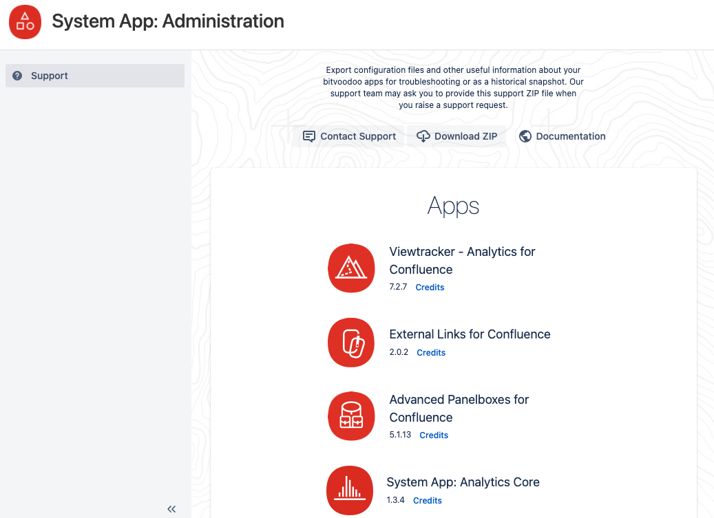 For a direct download of the ZIP, use <confluence-url>/rest/bitvoodoo-admin/1.0/support/export
