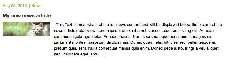 Your new news is listed on the dashboard (after Confluence has indexed the content) with your title, picture and Excerpt macro content (or first 500 characters of the content)