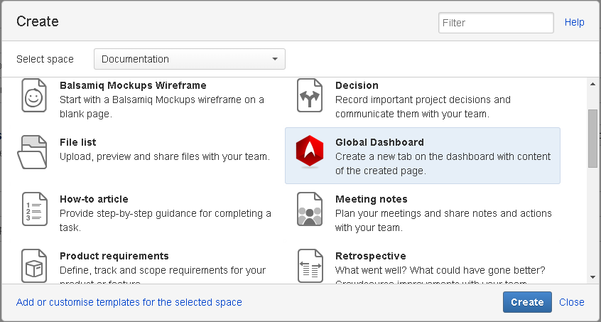 If you now click on Create again, you will enter the Confluence editor with the predefined blueprint content.
