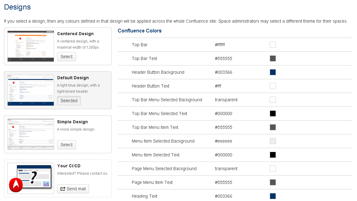 Select "Designs" under Enterprise Theme in the left-hand panel. This will list all the available designs. The currently selected design is highlighted.