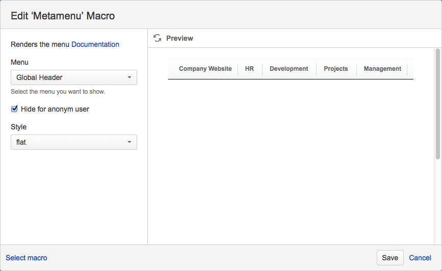 Configure the Metamenu macro in the header and footer sections in the same way as you would do for the global sections. Please refer to the paragraph "Embedding menus in the header" and footer above.