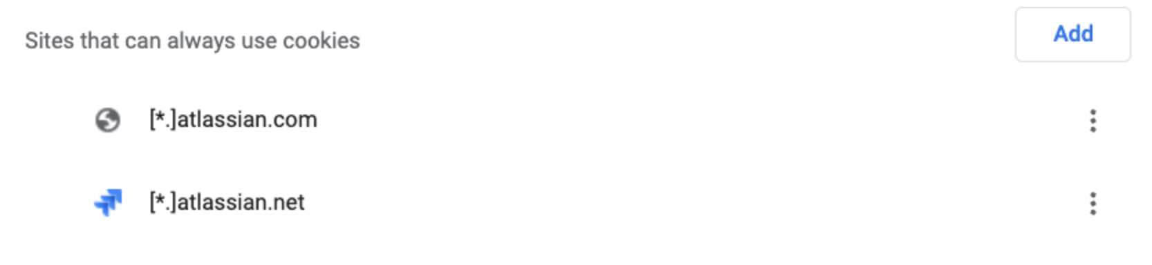 Please ensure you don’t block all third-party cookies. For Atlassian products to run smoothly, the following sites always need to have cookies allowed.