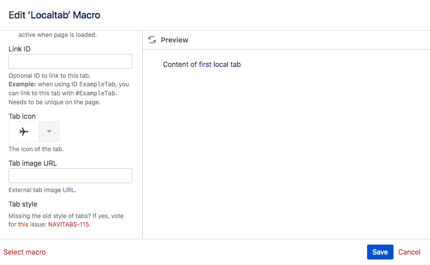 Edit the Localtab macro you want to add an icon to. Scroll down until you see "Tab icon".