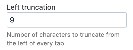 Left truncation | The number of characters to truncate from the left of every tab title. |