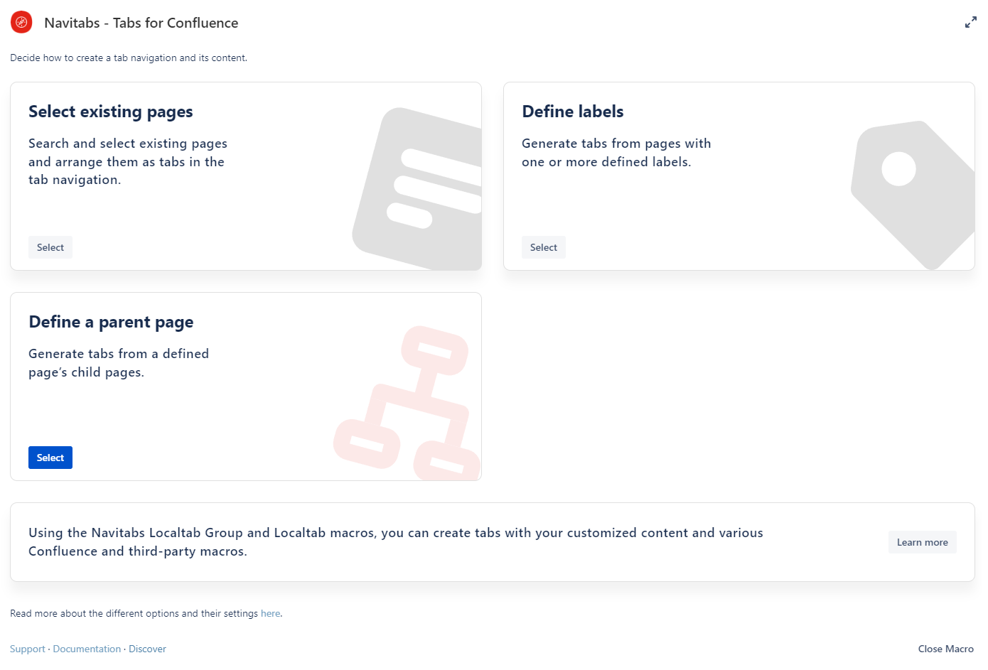 This new macro bundles the functionalities of the existing Navitabs macros Childtabs, Labeltabs, and Handpicked tabs.