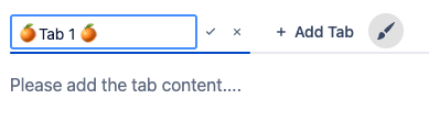 Unfortunately, you cannot use Confluence’s emojis library to give your tab a name. However, you can use any external emoji tool and copy the desired emoji into the clipboard. In the Tabs editor, edit the tab, then paste the emoji before or after the tab name.