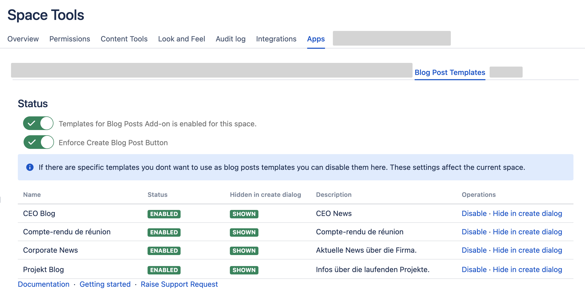 Go to the space you want to transform to a “blog space”. Choose Space Tools → Apps → Blog Post Templates.