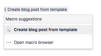 The app provides a macro to create a blog post with one click, using a predefined template. It works the same way as the Create from Template Macro in Confluence.