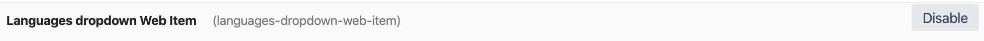 Scroll to "Languages dropdown Web Item" and click the "Disable" button.