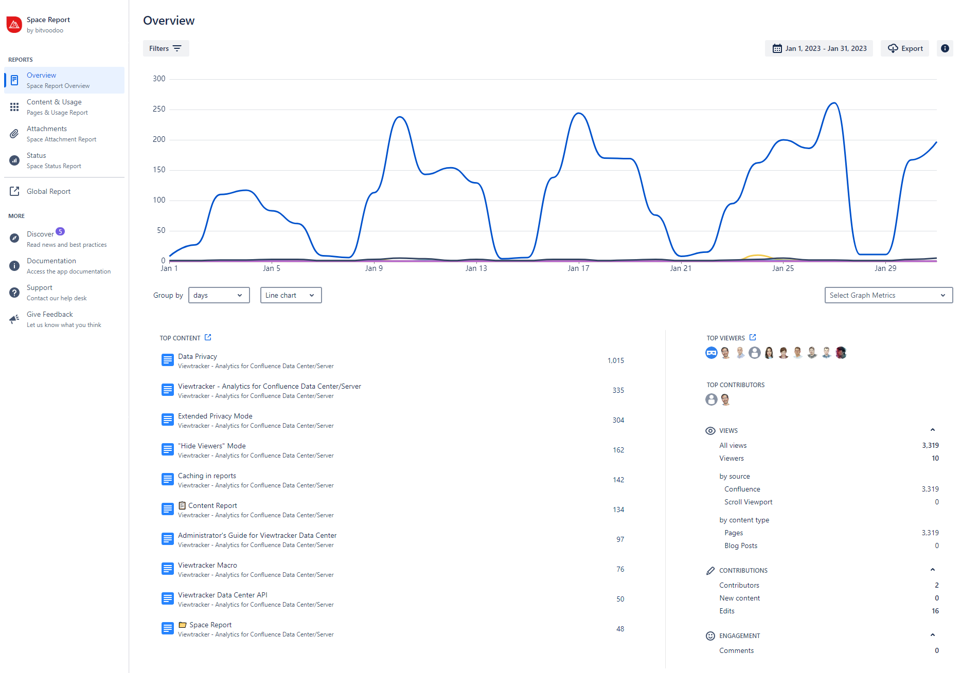 With this new macro, you can create custom reports on Confluence pages and make Viewtracker data accessible to users without report access.