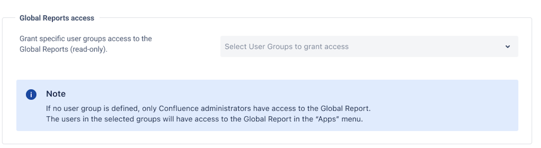 In “Global Reports access”, enter the name of the desired Confluence user group(s).