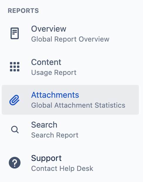 You can export the numbers of the Attachments Report as a CSV file in the Global and Space Report.