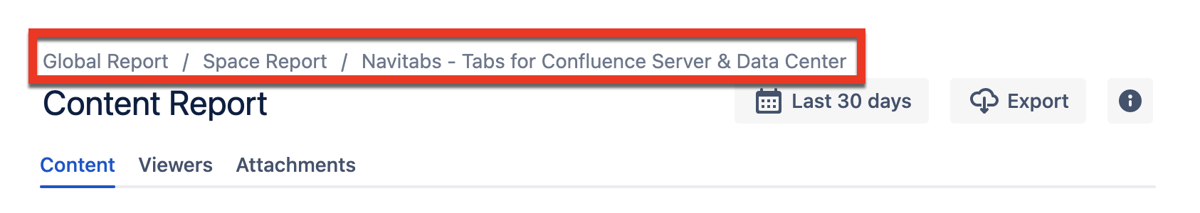 Use the breadcrumb to navigate between Content, Space and Global reports (depending on your access permission).