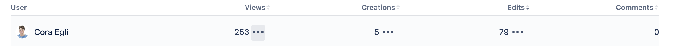 You can find detailed information on the content a specific user has viewed, created, edited or commented on. To access that data, tap on the three dots next to one of the columns Views, Creations, Edits, or Comments.