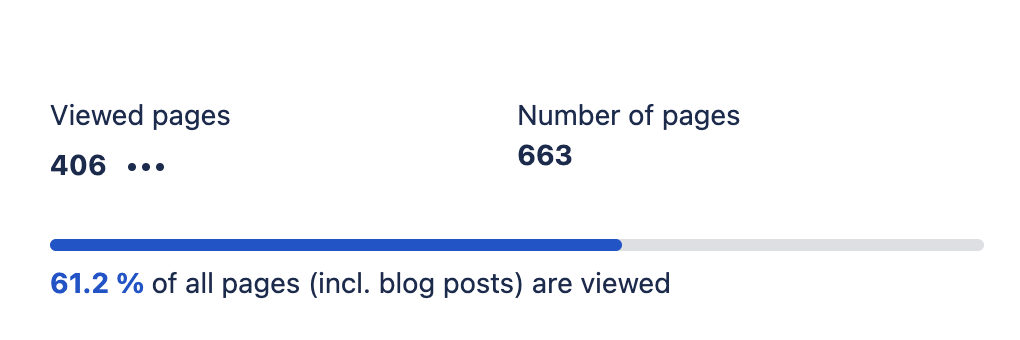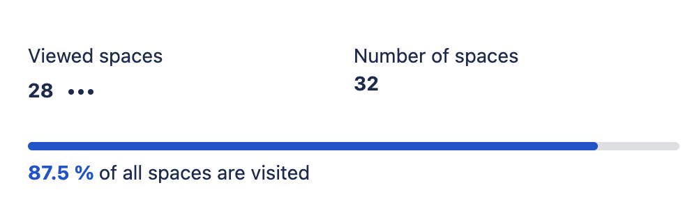This section lists the number of viewed spaces versus the total number of spaces. A space view is counted if at least one of the space contents has been viewed in the defined date range.