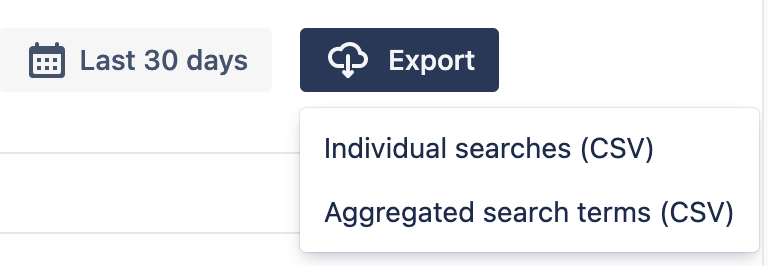 Confluence Settings → Viewtracker Global Report → Menu “Search” → Export → choose individual or aggregated searches