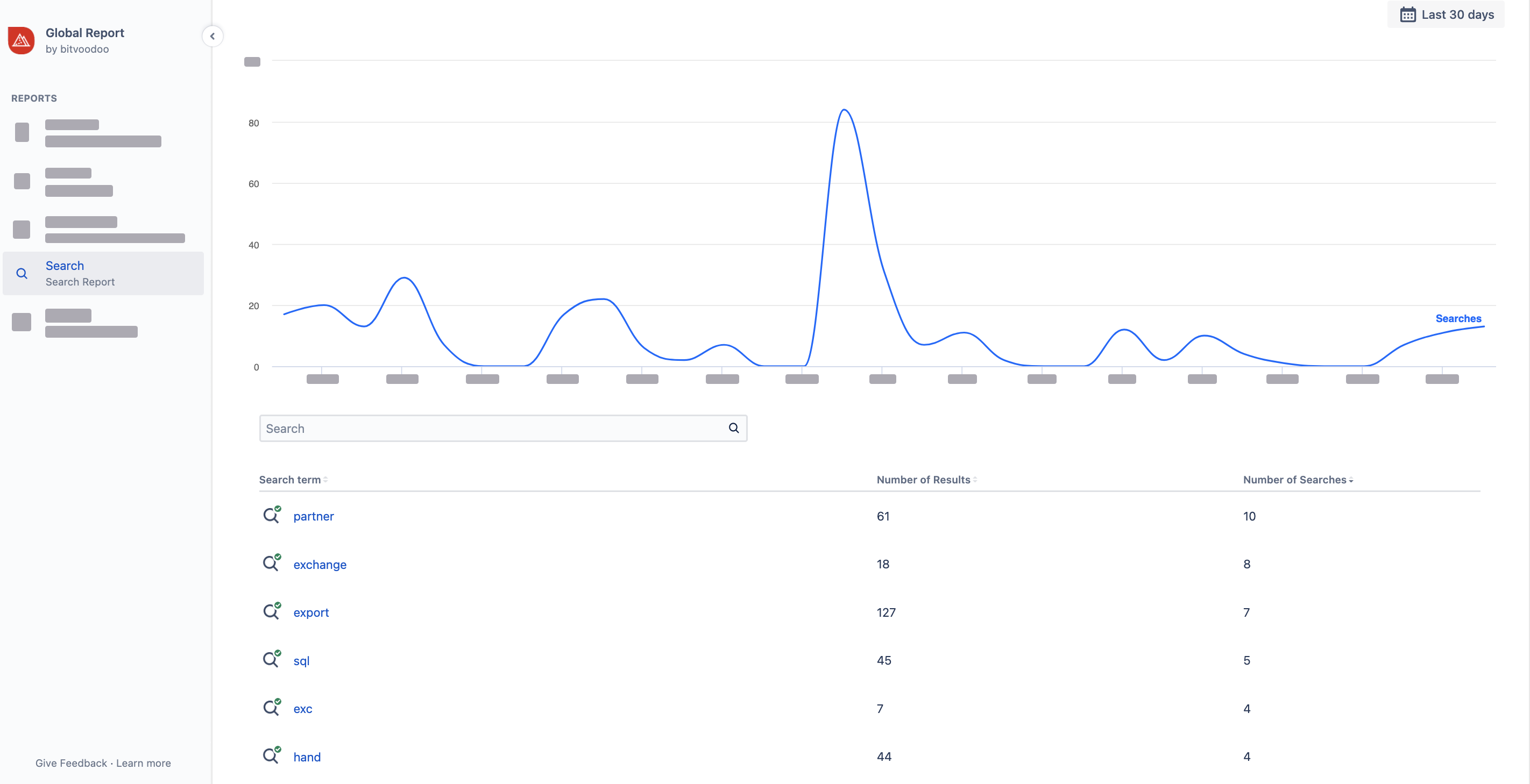 A graph showing the overall number of searches over the selected timeframe (default: last 30 days)