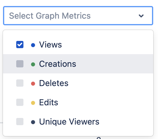 Below the graph, there is a drop-down menu listing the available metrics. By default, “Views”, “Creations” and “Edits” are selected.
