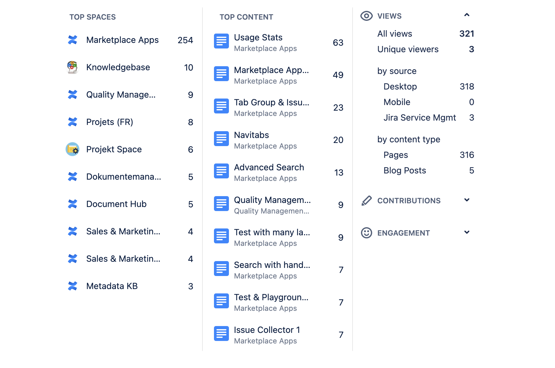 Space Report and Global Report will not feature the “top Viewers”. It will still show the number of Viewers, creations, views, edits, etc.