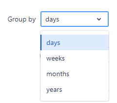 You can group the metrics in the graph by using the “Group by” option, which defaults to days, but also includes weeks, months, and years, as well as the chart type, which includes Line (default), Bar, and Area charts.