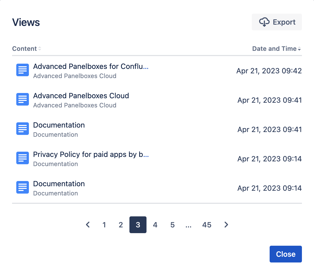 The loading time can vary depending on the defined date range and the number of tracked data on the Confluence instance.