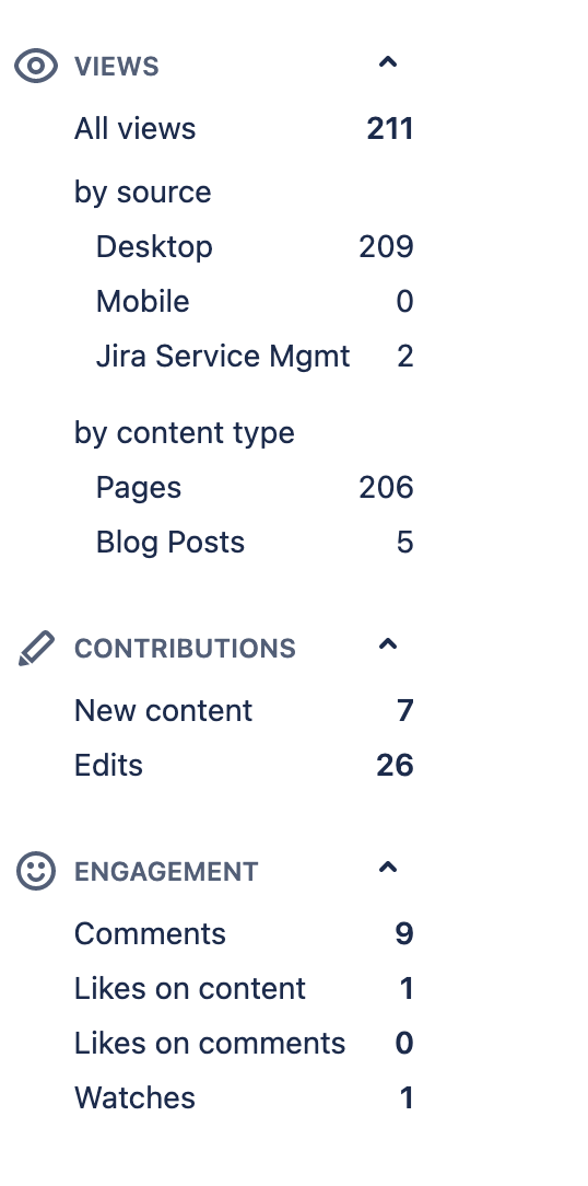Space and Global Report will not feature the section “Top Users”. It will still show the number of creations, views, edits, engagement, etc.