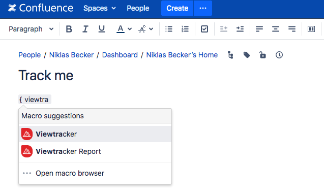 To track single pages, you need to insert the Viewtracker Macro on the page you would like to track: