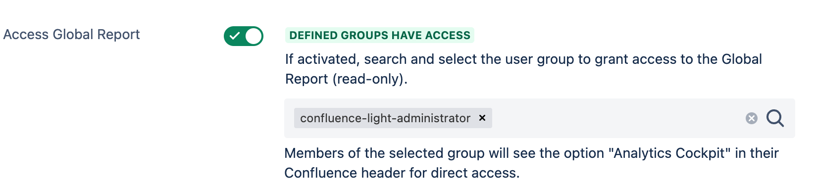 Members of the selected group will now see the option "Analytics Cockpit" in their Confluence header for direct access.