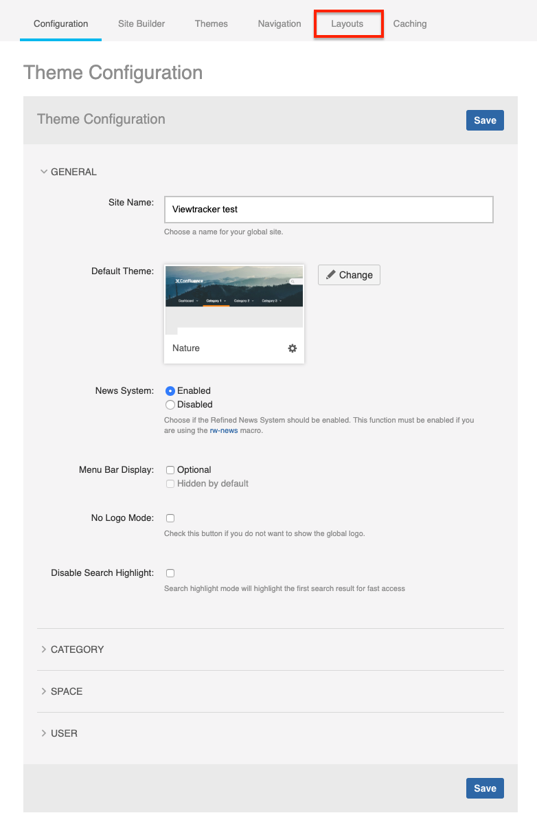 If you used our Viewtracker Macro in the global layout of Confluence and then changed to a Theme from Refined, you will see that Viewtracker disappears from your page. But don't worry: You still can work with the Viewtracker Macro. However, you have to put it in the Refined global layout following the instructions below.