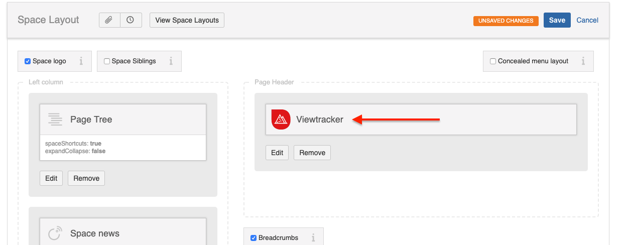 In this example, we placed the Viewtracker Macro in the page header. Hit “Save” on the top of the page.
