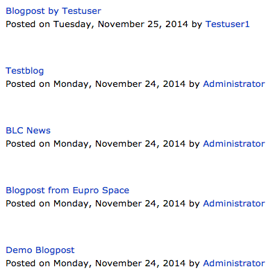 Reports on Confluence content (pages, news, comments, attachments, etc). The content can be filtered by space, type, scope or labels, as well as any custom filters specified in the body of the macro. | List the 5 most recent blogposts from all spaces: