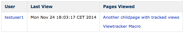 Filters out results based on a user property. Users can be filtered by a combination of specific user names, group membership and space permissions. | Alle getrackten Views ausser von User "admin":