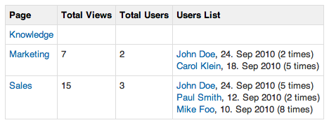 In this example the page "Knowledge" does not contain the viewtracker plugin.